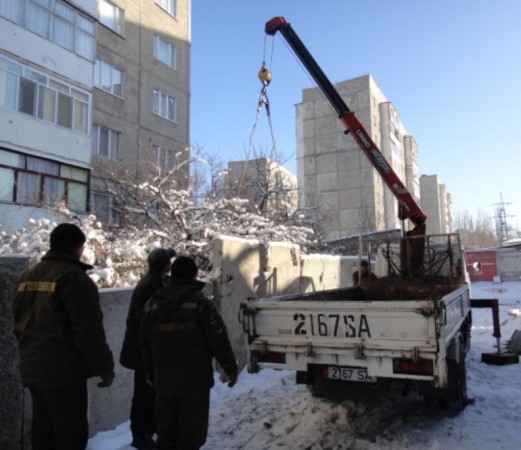 Тем временем наша бригада на месте, и благодаря лаборантам, уже знает, что нужно будет убрать пять плит бетонного забора. Не зря ж с нами приехал подъемный кран. Подъехать к месту назначения можно было только через стройку. Здесь, оказывается, нас уже ждали: когда обнаружили повреждение, руководство стройки предупредили, что нужно будет проводить ремонт и предоставить въезд бригаде. Первым к месту прибыл кран для демонтажа бетонного забора.