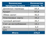 и обмен валют (46,9%). Более продвинутые респонденты называли также такие услуги, как интернет-банкинг, ипотека, накопительные и детские вклады, конвертация, ссуда, аренда банковских ячеек.