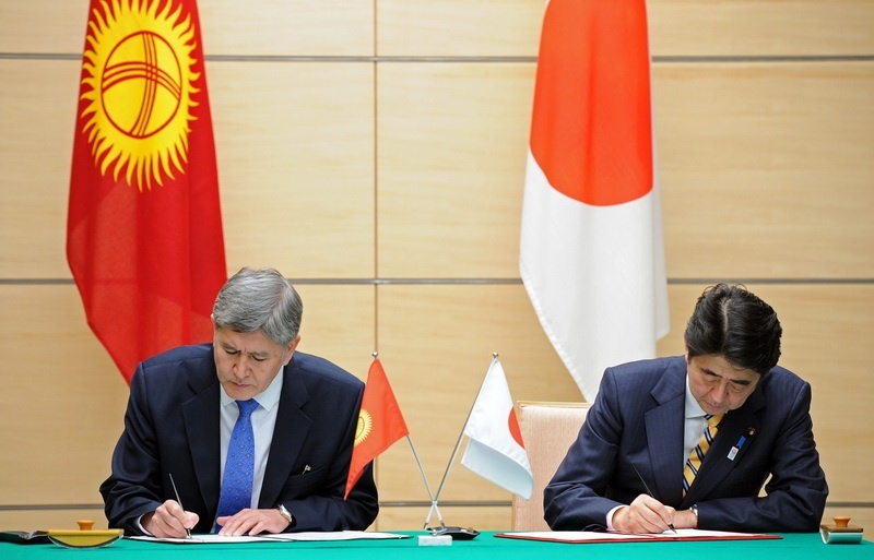 Сегодня, 27 февраля, во время официального визита президент Кыргызстана Алмазбек Атамбаев подписал совместное заявление о сотрудничестве с премьер-министром Японии Синдзо Абэ.