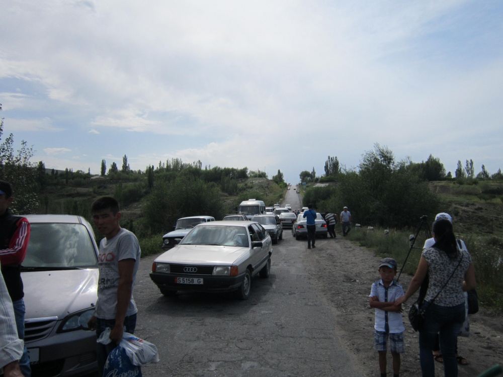 В четверг же сарууйцы общались с заместителем министра внутренних дел Бакытом Жусубалиевым, приехавшим поздравить победителей спортивных соревнований, и Эмилбеком Салиевым, начальником УВД Иссык-Кульской области. Встреча правоохранителей и местных жителей длилась около полутора часов. Переговорщики устроились прямо в тени деревьев за зданием сельской конторы. Попытки журналистов узнать, о чем идет речь, или даже приблизиться к месту общения иссыккульцев и правоохранителей пресекались на корню. В итоге силовики уехали с места событий, а сарууйцы отправились блокировать дорогу.