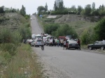 Республиканскую трассу перекрыли в три часа дня. В двух местах на мосту со стороны западного въезда в село Саруу активисты, которых, кстати, собралось не более ста человек, перегородили проезд камнями. На месте блокировки дороги буквально за полчаса возник затор. Встали грузовые машины, легковушки и микроавтобусы, работающие на пассажирских перевозках.