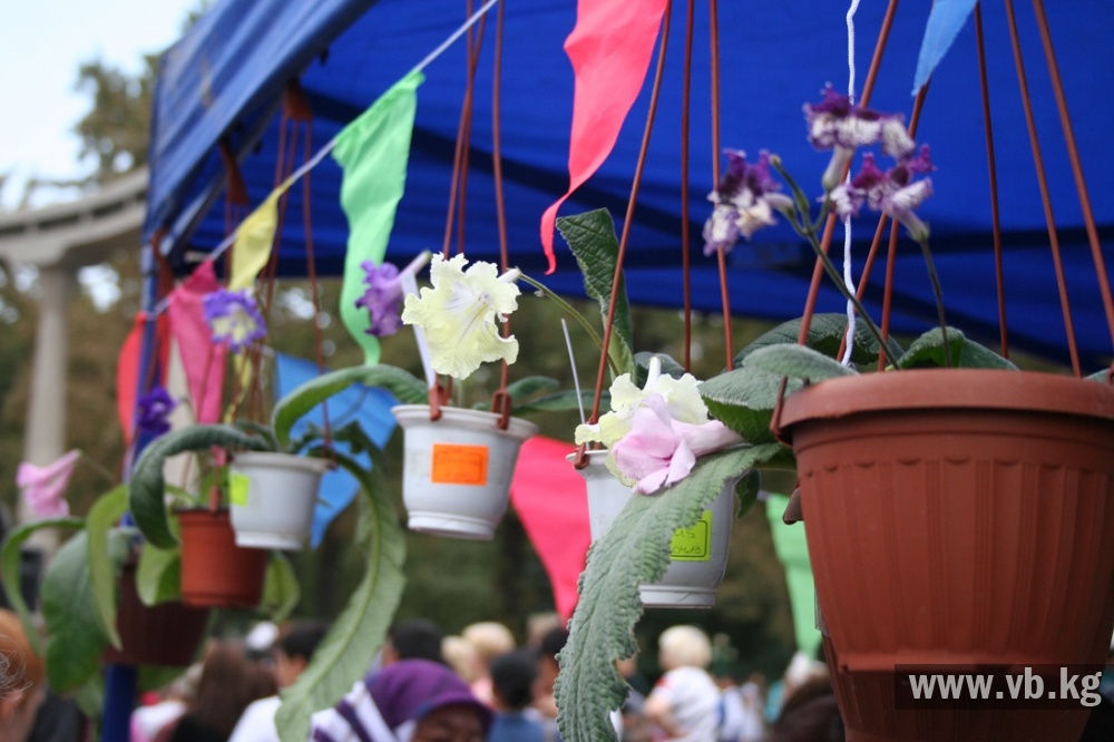 На аллее, ведущей к памятнику Курманджан датки, в два ряда расположились 22 участника ярмарки цветов. Среди них коллекционеры, частные предприятия, магазины города, а также представители "Зеленстроя".