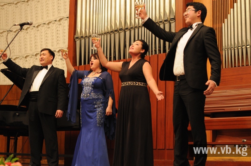 Открывал музыкальный вечер президентский камерный оркестр "Манас". Но в этот раз он выступал без дирижера - заслуженного артиста КР Эрниса Асаналиева. Как пояснила Замира Мавлянова, Эрнис сейчас находится в Турции, где проходит масштабный концерт с участием известных музыкантов.