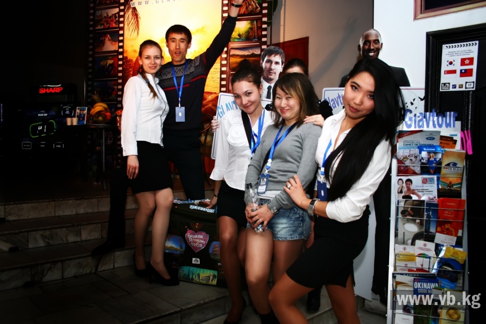 Наша "ночь" началась уже с наступлением темноты в Русском драматическом театре. В холле театра по периметру выстроились стенды разных бишкекских компаний - от косметических до продуктовых, от алкогольных до радиокомпаний. Кстати сказать, гостей угощали едой и напитками.