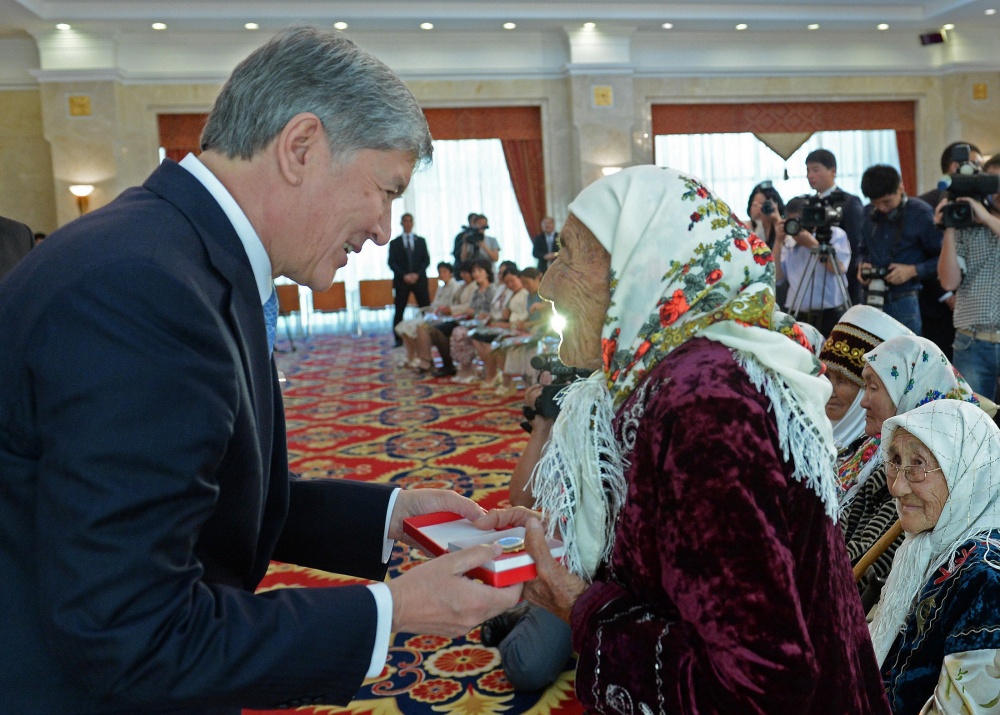 Все женщины из рук президента Алмазбека Атамбаева получили ордена "Баатыр эне"