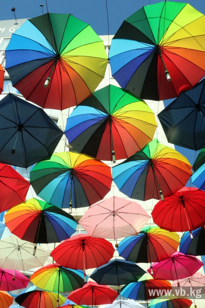 В Бишкеке рядом с торговым центром Beren Gold появилась "улочка" зонтиков. Улица получилась короткая, зато очень позитивная.