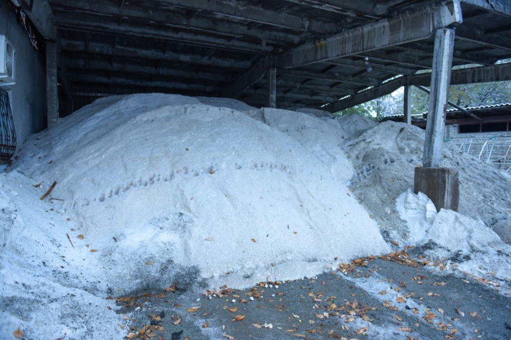 В данный момент на базе муниципального предприятия имеется 3100 тонн песка и 450 тонн технической соли.
