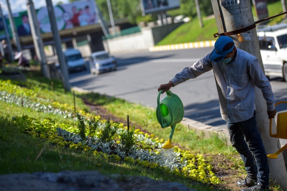 Сейчас сотрудники ведут посадку цветов на пересечении бульвара Эркиндик и улицы Пушкина – 14 500 штук, бульвара Эркиндик - Токтогула – 1700, Аллее Молодежи – 5 тыс., на откосах по улицам Ибраимова – 7 тыс. и Абдрахманова – 12 тысяч.