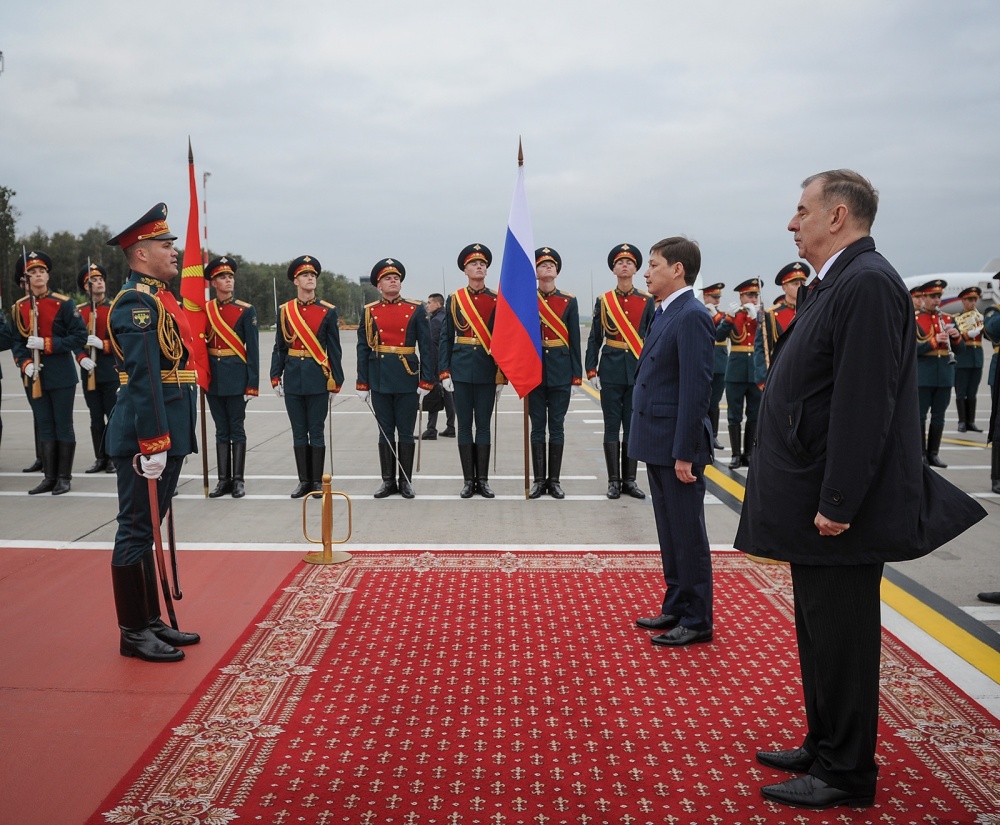 В международном аэропорту Внуково города Москвы главу правительства в присутствии роты почетного караула встретил Чрезвычайный и Полномочный Посол РФ в Кыргызской Республике Андрей Крутько, директор 3-го Департамента стран СНГ МИД Российской Федерации Александр Стерник.