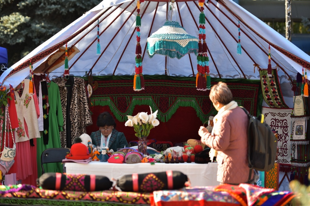 В столице стартовал фестиваль "Мелодия и ремесла". На одной площадке проводится музыкальный концерт, выставка ремесел и мастер-классы по изготовлению войлочных изделий в различных техниках, курака и вышивки.