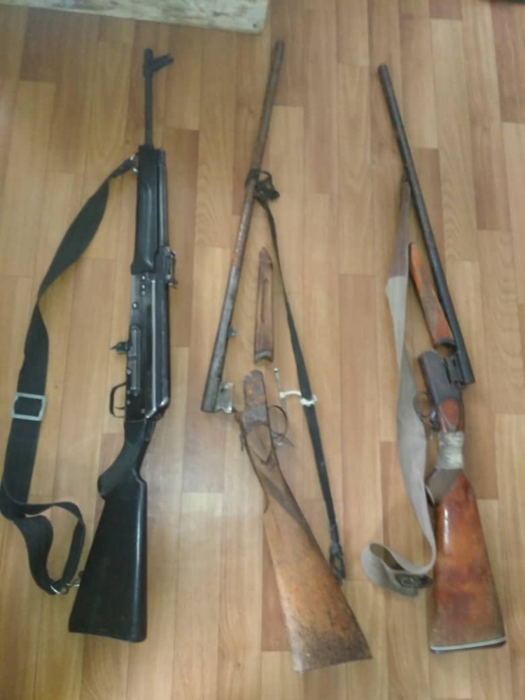 В ходе оперативно-розыскных действий, проводимых в местности Чар-Кудук в рамках "Канал-Кордон", в доме у гражданина О.К. были обнаружены несколько единиц оружия: нарезное ружье "Сайга" – 1 комплект, НСПУ (ночной стрелковый прицел унифицированный) –1 ед.; гладкоствольное ружье 16 калибра – 2 ед., боеприпасы различных калибров – 107 штук, магазины от карабина и СВД – 2 ед.
