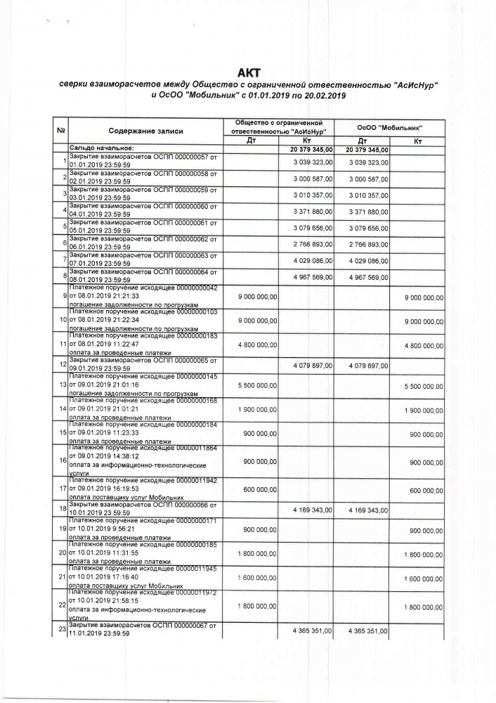 "Внутреннее расследование причин возникновения столь огромной суммы долга "АсИсНур" перед компанией "Мобильник" демонстрирует явные признаки умышленного вывода денег группой Адилета Боотаева путём манипуляций с юридическими и финансовыми документами "Мобильника".