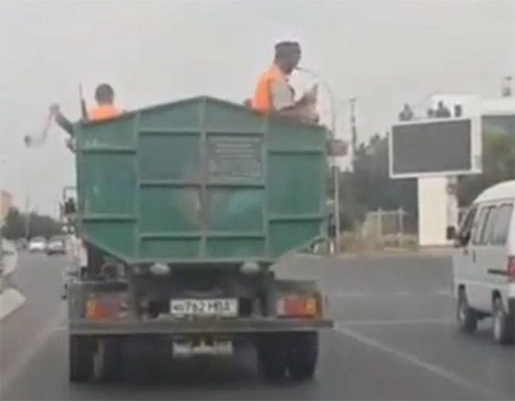Как отмечают пользователи, дело происходило в Коканде. А на видео - рабочие "Тоза худуд" (наша версия "Тазалыка").