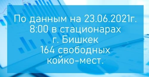 По данным Минздрава на 23 июня 8:00 часов в стационарах города Бишкек всего 164 свободных койко-мест для больных коронавирусом.