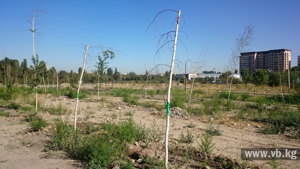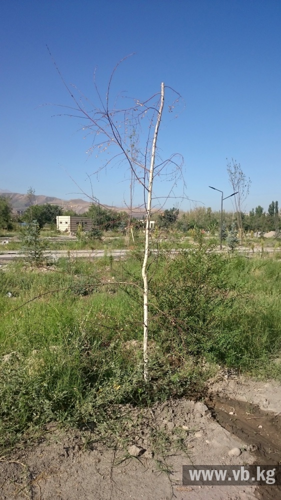 Мы обошли все парки в южной зоне Бишкека, а именно: недостроенные "Балалык" и "Ынтымак-2", Победы имени Даира Асанова, Ата-Тюрка, здоровья и "Ынтымак". А начался обход с зоны отдыха для детей (фото 1-6). Ее еще не сдали в эксплуатацию, строительные работы ведутся черепашьими темпами. Однако здесь мы насчитали как минимум два десятка засохших саженцев березы. Некоторые из них специально сфотографированы на фоне здоровых деревьев, чтобы наглядно была видна разница.